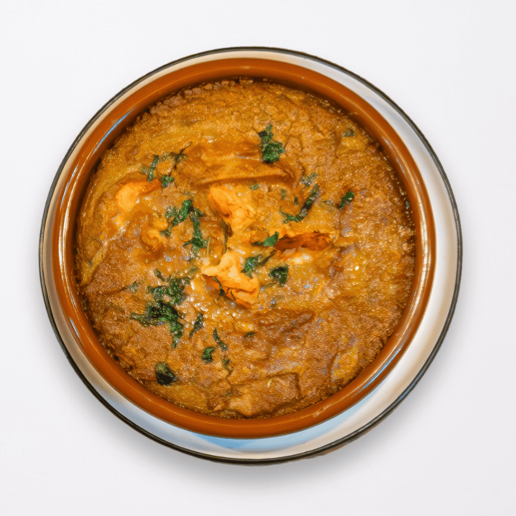 En tu hogar u oficina, zambúllete en un mar de sabores con este guiso reconfortante, donde el pescado fresco y camarones se entrelazan en un delicado caldo de maní y plátano verde.