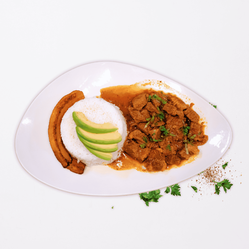 Saborea el alma de Ecuador con nuestro sublime Seco de Carne, un plato donde la ternura de la carne de res se funde en un abrazo con sabores ricos y profundos.