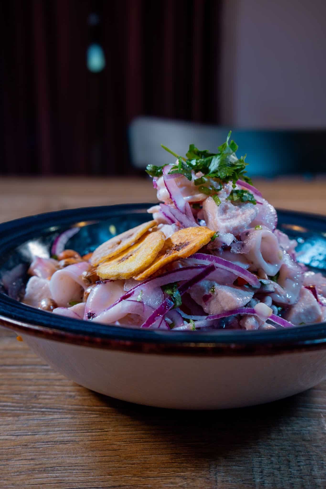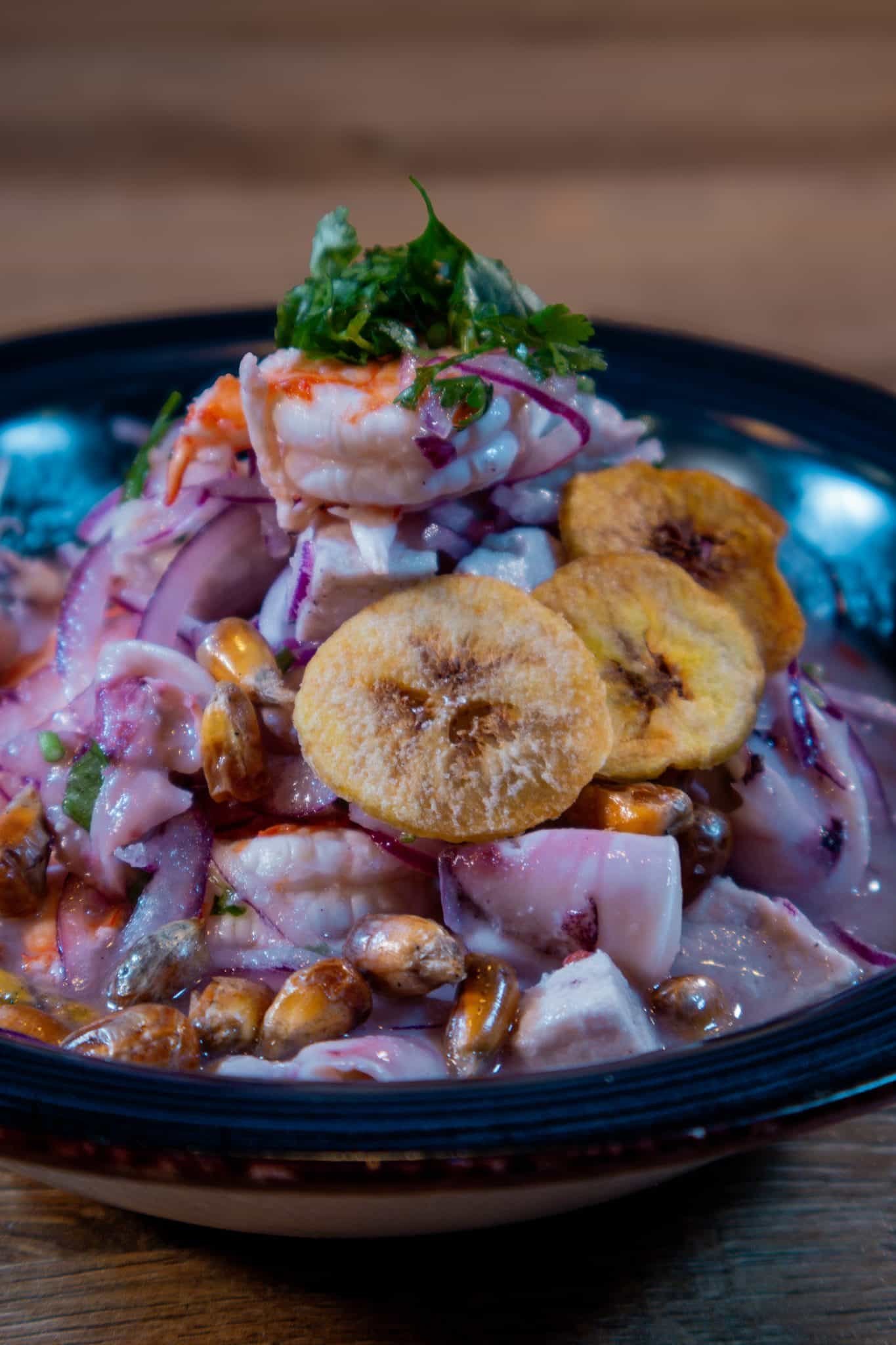 Ceviches frescos, carnes a la brasa, encebollado, guatita y muchos más sabores que te transportarán a nuestra tierra.